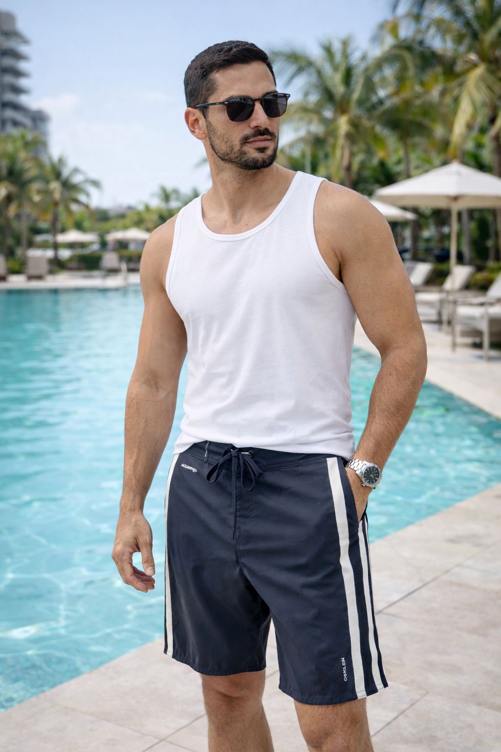 Bermuda de surf Aquaone que combina funcionalidade e estilo urbano. Confeccionada com tecnologia de secagem rápida, oferece conforto máximo tanto na água quanto no dia a dia. O padrão de listras em preto e cru traz sofisticação ao visual, enquanto o corte moderno se adapta perfeitamente ao seu corpo. Ideal para quem busca uma peça versátil que transita entre o esporte aquático e o casual refinado.