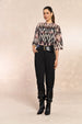 Blusa feminina com manga 3/4 em tule preto que combina elegância e conforto. O tecido leve e fluido do tule proporciona movimento natural, enquanto o design ethnic blur adiciona um toque sofisticado e moderno ao visual. Perfeita para criar looks versáteis, desde ocasiões casuais até eventos mais refinados. A manga 3/4 oferece cobertura equilibrada, ideal para diferentes estações e estilos pessoais.
