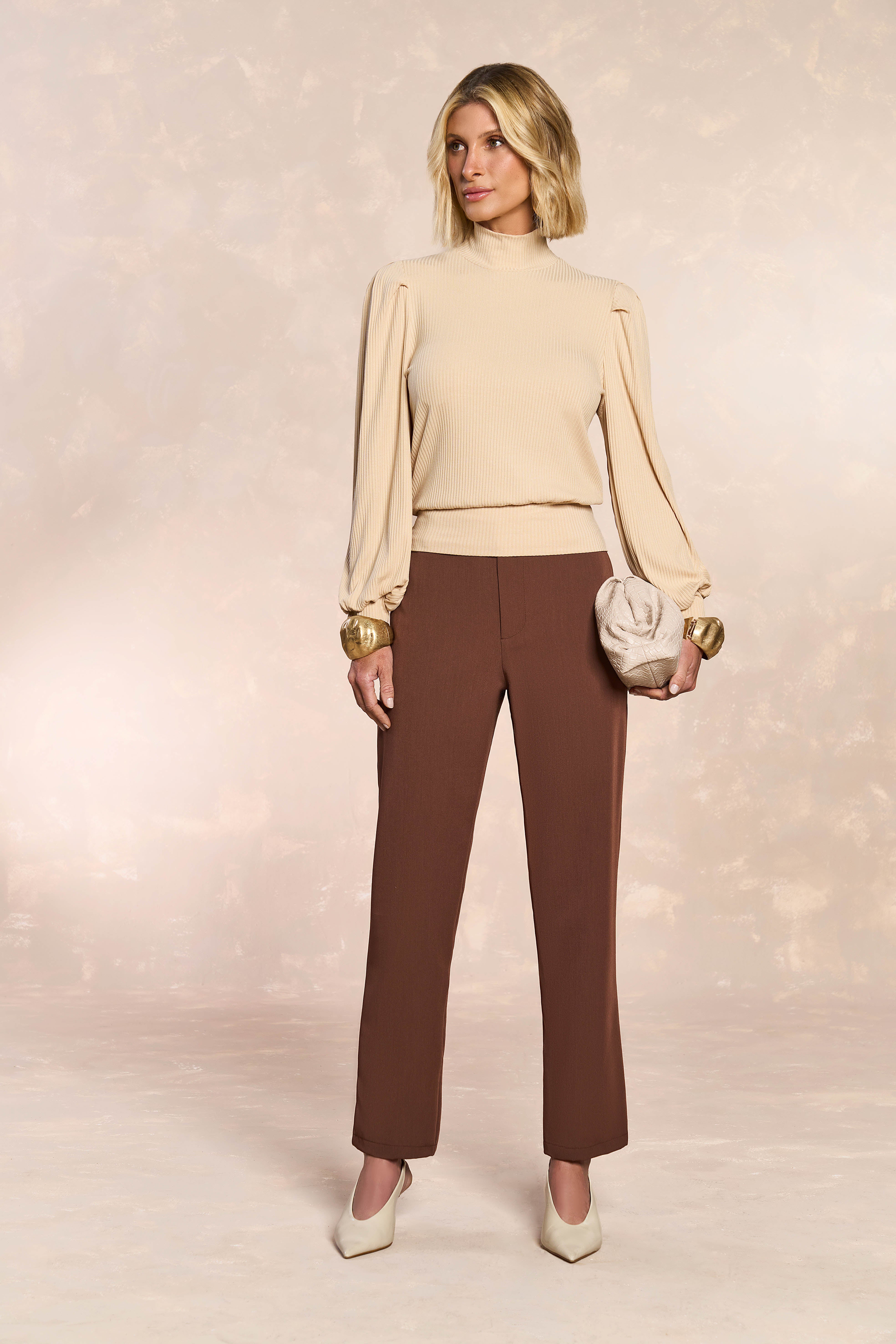 Blusa feminina de manga longa confeccionada em ribana, um tecido macio e confortável ideal para o dia a dia. O tom caqui neutro combina facilmente com diferentes peças do seu guarda-roupa, oferecendo versatilidade para criar looks casuais e elegantes. A manga longa proporciona cobertura e proteção, enquanto o material respirável garante conforto mesmo em dias mais quentes. Perfeita para usar em qualquer estação.