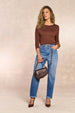 Calça jeans feminina mom fit em denim escuro com acabamento lavanda. O corte clássico mom proporciona conforto e elegância, ideal para looks casuais e sofisticados. Confeccionada em denim de qualidade, oferece durabilidade e um caimento perfeito. Versátil e atemporal, combina com diversos estilos e ocasiões do dia a dia.