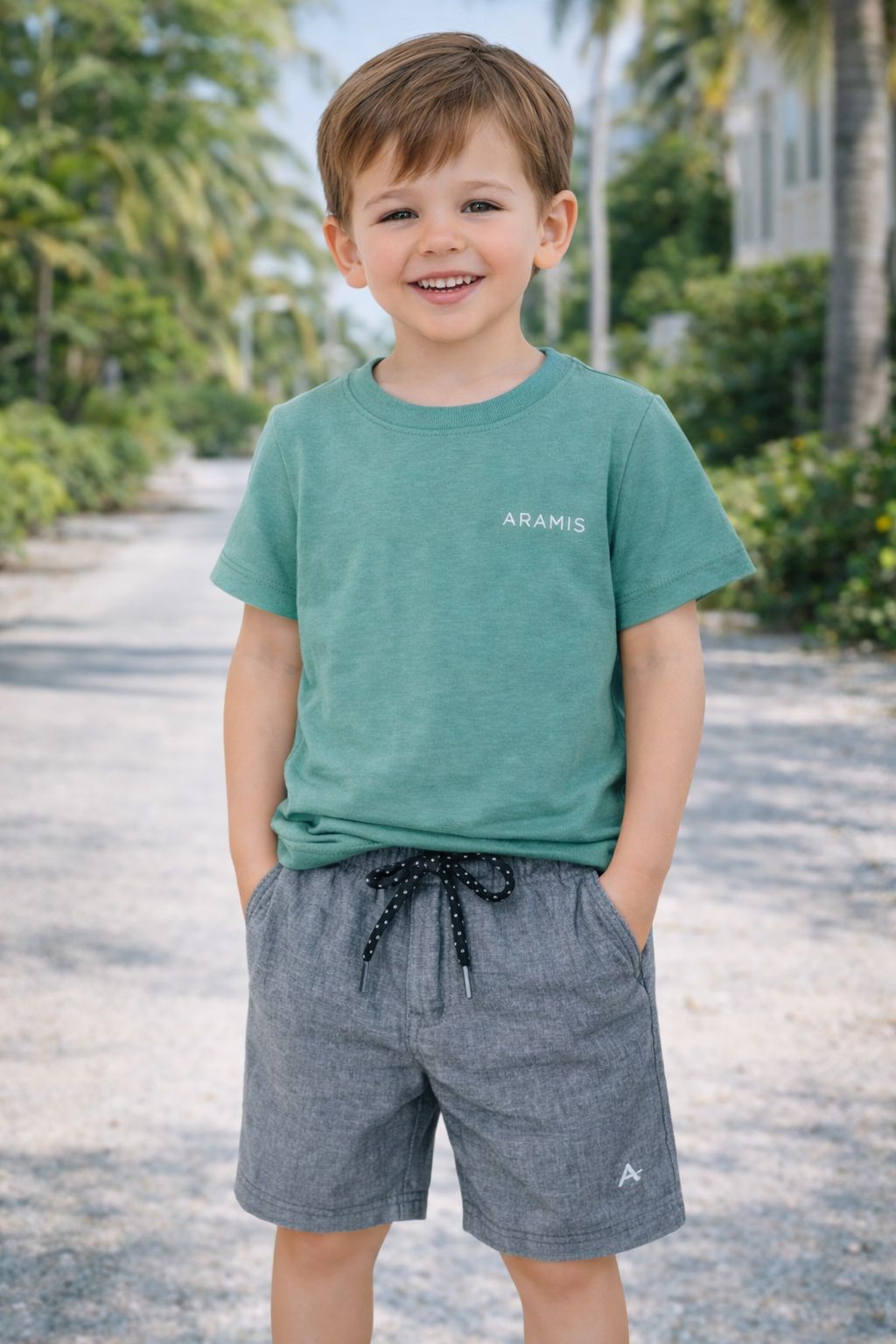 Camiseta infantil Aramis com manga curta e estampa exclusiva Linhas Selva. Confeccionada em tecido macio e respirável, perfeita para o dia a dia das crianças. O design traz elementos da natureza com linhas que remetem à selva, combinando estilo e conforto. Ideal para meninos que gostam de looks modernos e descontraídos.