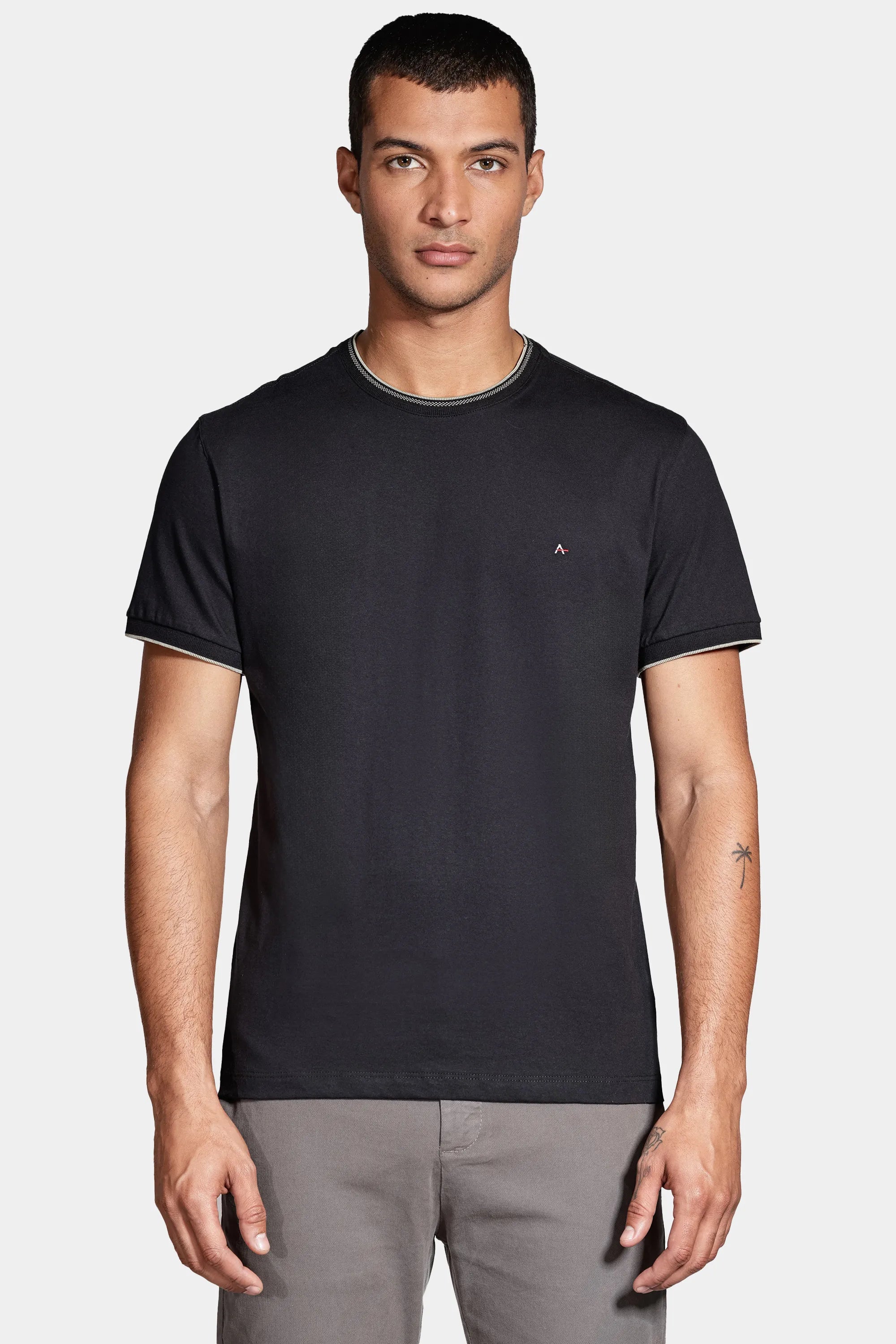 Camiseta confeccionada em 100% algodão premium. Esta camiseta básica é tudo menos comum, seu toque macio e respirável proporciona conforto absoluto ao longo do dia, enquanto a estrutura leve e o caimento equilibrado valorizam diferentes tipos de corpo. O acabamento premium e o detalhe de friso na gola garantem maior durabilidade e aparência impecável. Uma camiseta básica com essência premium pensada para o homem que valoriza qualidade, praticidade e estilo sem esforço.