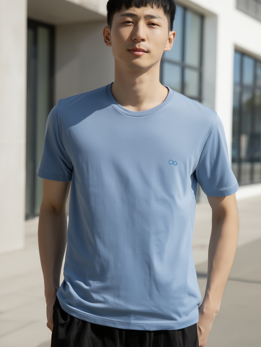 Camiseta masculina de manga curta em azul claro, uma opção fresca e contemporânea para o seu dia a dia. Produzida com tecido respirável e macio, garante conforto máximo mesmo em dias quentes. O tom suave da Ogochi é extremamente versátil, combinando com praticamente qualquer peça do seu guarda-roupa. Ideal para quem busca uma camiseta essencial que oferece qualidade superior e praticidade. Invista nesta peça versátil que se torna indispensável em qualquer coleção de roupas básicas de qualidade.