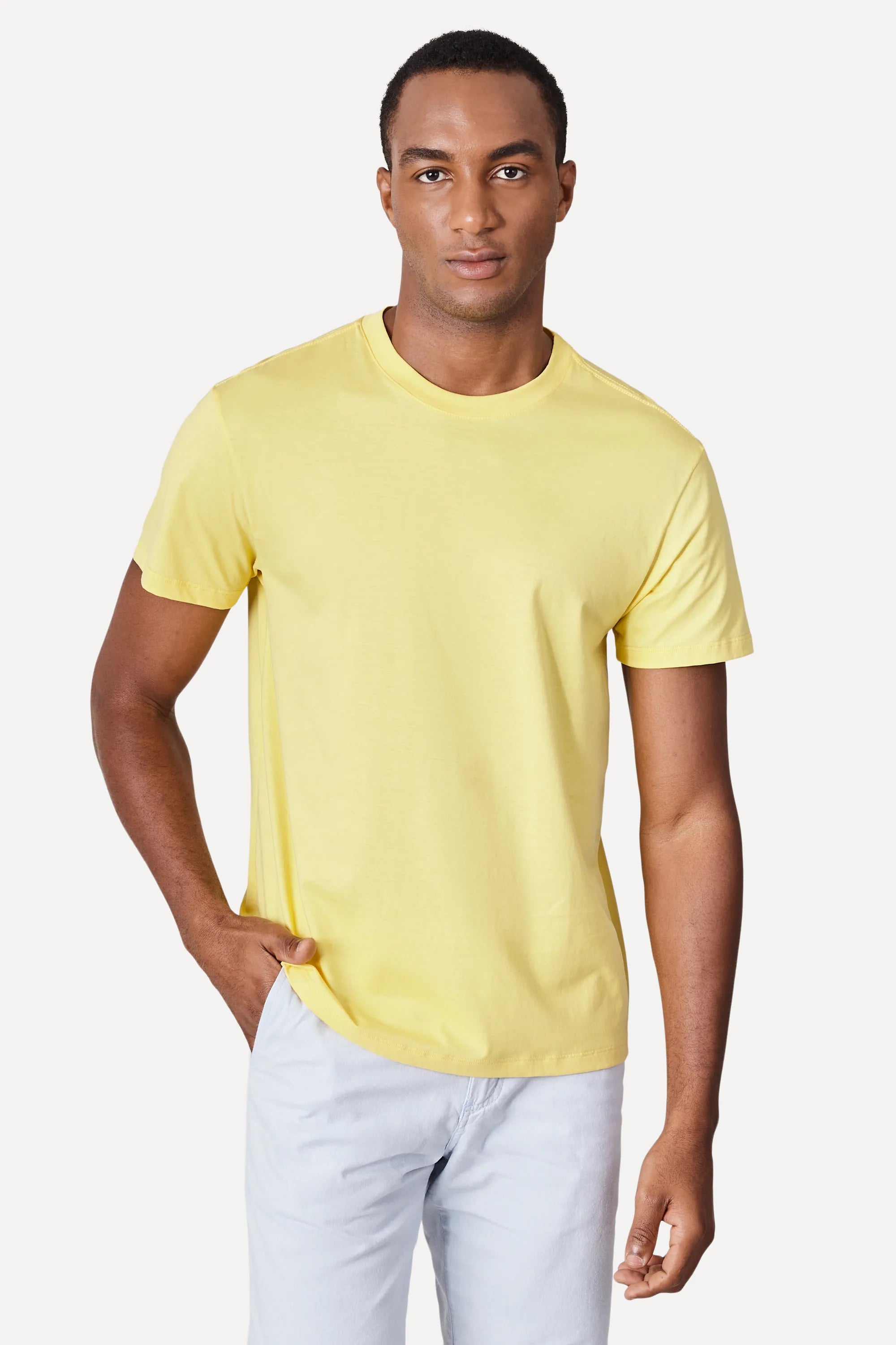 Procurando camiseta pro dia a dia? Aposte na Camiseta Pima Cores! Feita em algodão Pima, o melhor do mundo, proporciona máximo conforto e frescor o dia todo. Possui manga curta e gola redonda em ribana. Combine com calças ou bermudas, tênis ou chinelos e agasalhos. O modelo tem 1,89 de altura, 102 de tórax e veste 40. Comprando esta peça, você viabiliza cinco pratos de comida através do nosso Programa 1P5P. Camiseta produzida eticamente no Brasil.
