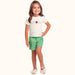 Conjunto infantil feminino com blusa estampada e short em sarja. A blusa apresenta detalhes florais em tons de marfim e verde, oferecendo um visual fresco e alegre para o dia a dia. O short em sarja garante conforto e durabilidade, ideal para crianças ativas. Perfeito para compor looks casuais e práticos.