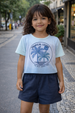 Conjunto feminino infantil que celebra o estilo tropical, composto por blusa com estampa "Tropical Living" e short multicolorido em tons de azul. A blusa traz uma temática que evoca leveza e conexão com a natureza, enquanto o short multicolorido adiciona vivacidade e movimento ao visual. Confeccionado em tecido macio e respirável, o conjunto oferece conforto ideal para dias quentes e atividades ao ar livre. A combinação sofisticada entre a mensagem inspiradora da blusa e as cores vibrantes do short cria um look versátil e elegante, perfeito para meninas que apreciam estilo com personalidade.