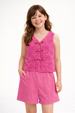 Conjunto feminino juvenil composto por short e estampa com laços em rosa chiclete. Perfeito para meninas que buscam estilo e conforto no dia a dia. A combinação de peças versáteis permite criar diferentes looks para escola, passeios e momentos de lazer. Tecido de qualidade que garante durabilidade e facilidade de cuidado. Uma escolha ideal para quem quer se destacar com um visual moderno e descontraído.