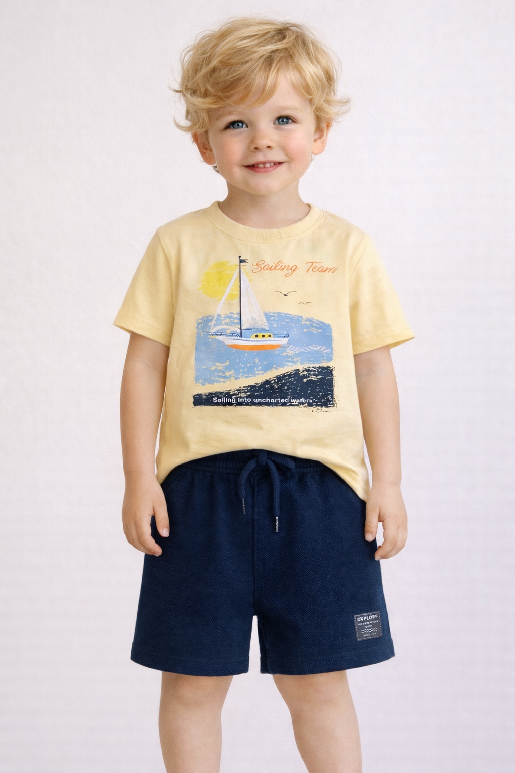 O Conjunto Elian é composto por camiseta em meia malha e bermuda em moletinho texturizado. A camiseta de mangas curtas possui uma charmosa estampa de barco inspirada em desenhos com giz de cera, garantindo um toque lúdico e divertido ao look. Já a bermuda conta com elástico no cós, cadarço decorativo e etiqueta exclusiva da marca. Ideal para passeios e momentos de lazer, esse conjunto une conforto e diversão para os pequenos aventureiros explorarem o mundo com estilo.