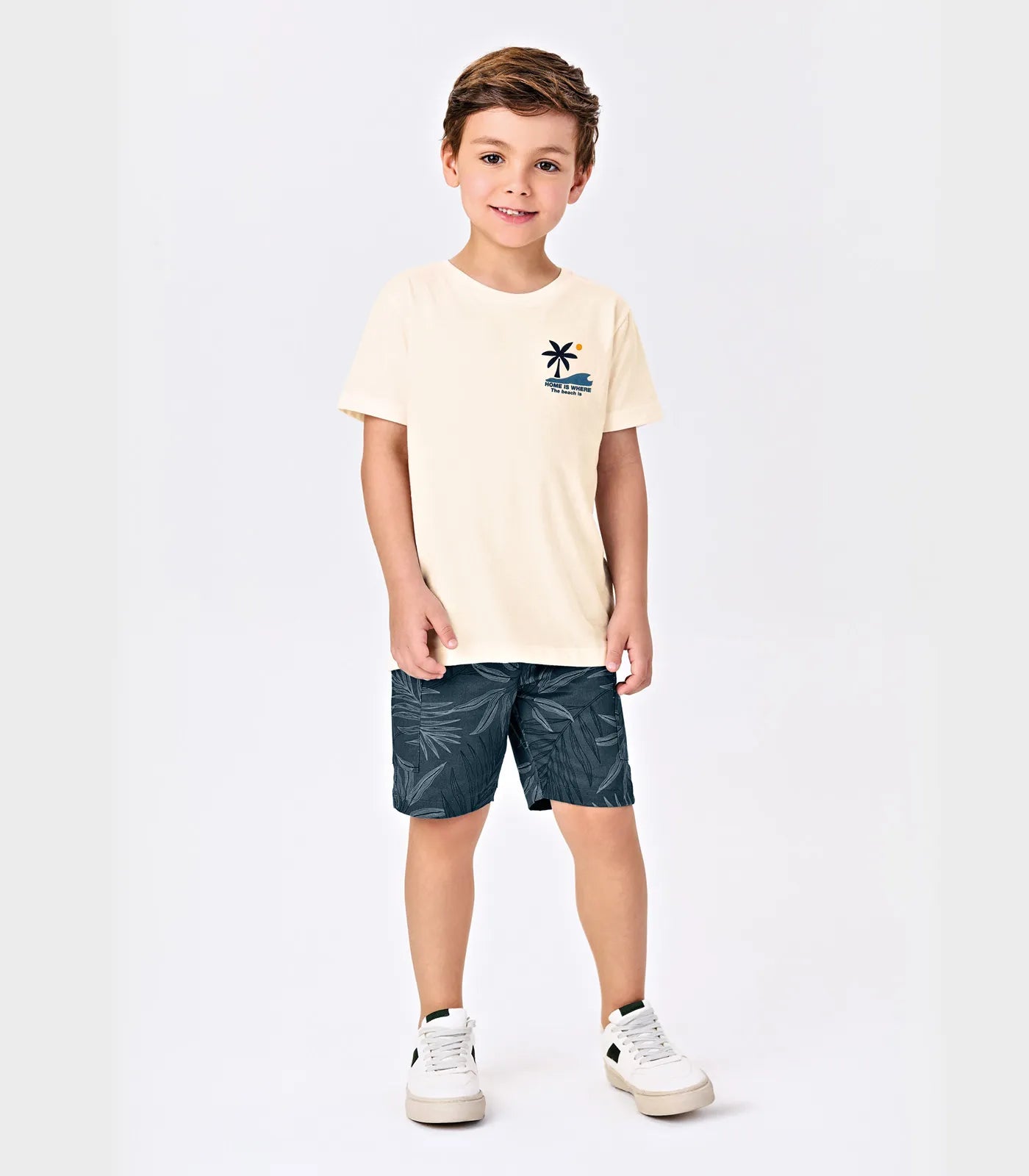 Conjunto infantil masculino, ideal para um visual moderno e confortável. A camiseta é confeccionada em meia malha, proporcionando um toque macio e leve, com estampa no peito que adiciona um detalhe estiloso. A bermuda, feita em sarja, apresenta uma estampa vibrante, trazendo um visual diferenciado e descontraído. Com bolsos sobrepostos, oferece praticidade para o dia a dia. O cós com elástico garante um ajuste confortável e seguro, tornando este conjunto perfeito para diversas ocasiões.