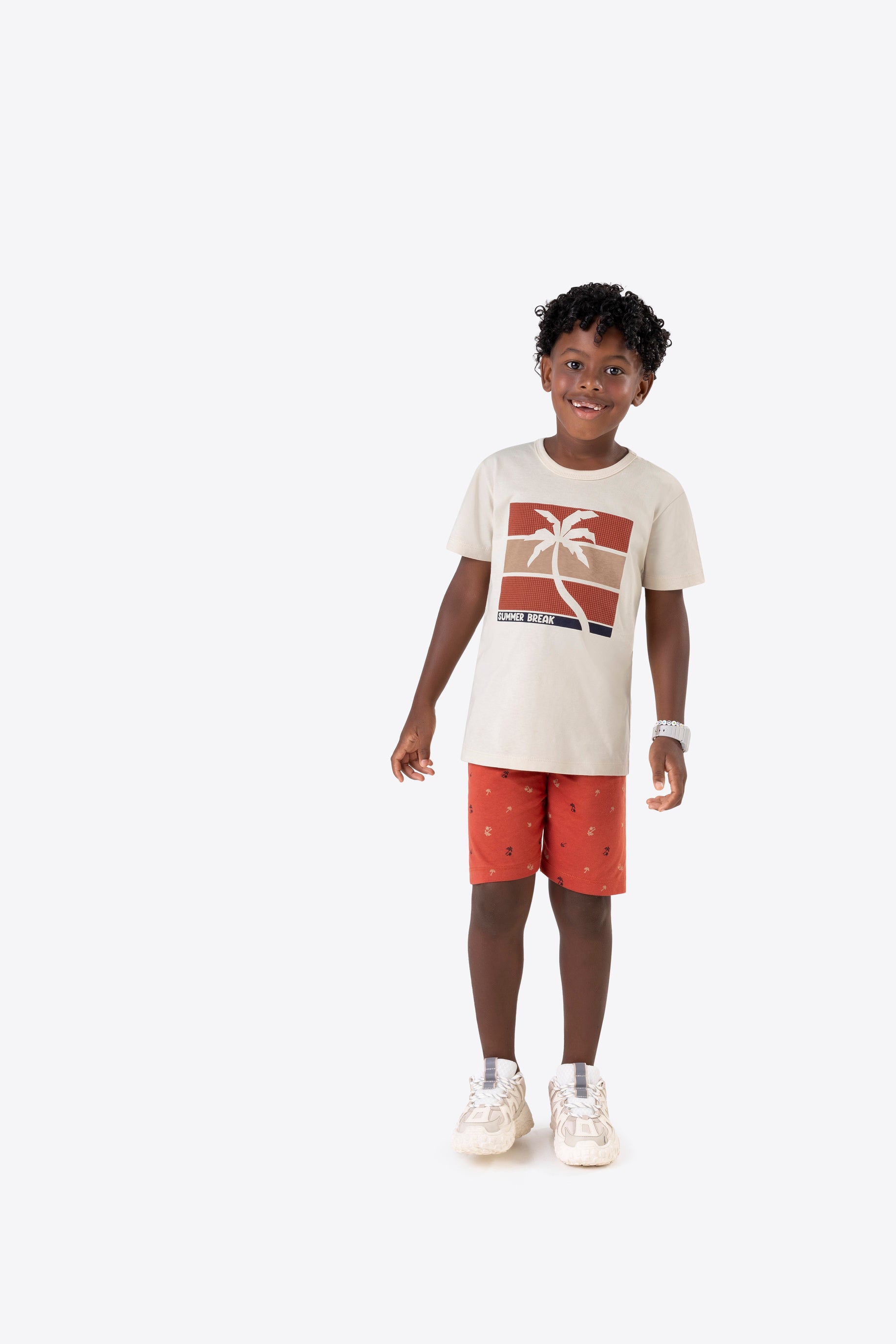 Conjunto infantil com estampa em relevo que combina conforto e estilo. Composto por camisa e bermuda em tecido de qualidade, ideal para o dia a dia das crianças. A estampa quadriculada com detalhes em relevo traz um toque moderno, enquanto a paleta de cores em tons de tijolo e neutros combina facilmente com outros itens do guarda-roupa. Perfeito para meninos que gostam de looks descontraídos e práticos.
