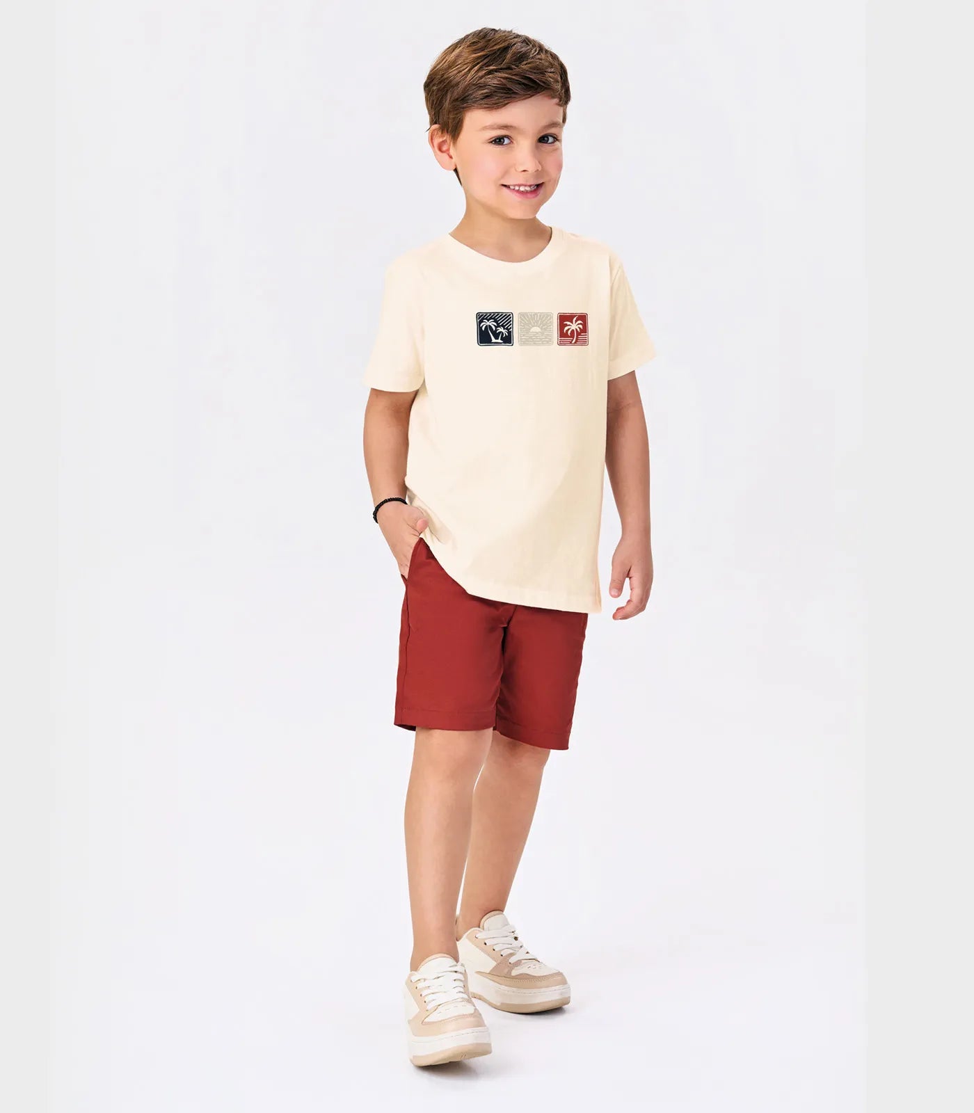 O Conjunto Infantil Camiseta com Bermuda Trick Nick é ideal para os pequenos que adoram conforto e estilo. A camiseta, confeccionada em meia malha macia, possui uma charmosa estampa no peito, dando um toque divertido ao visual. A bermuda, feita em sarja, oferece resistência e conforto, perfeita para o dia a dia. Esse conjunto combina praticidade e elegância, proporcionando liberdade de movimento e um look moderno e encantador para as crianças.