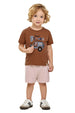 Este conjunto infantil traz uma camiseta com detalhe de porta de jeep e bermuda marrom mescla, perfeito para os pequenos exploradores. Confortável e resistente, oferece liberdade para brincar e se aventurar com muito estilo e praticidade no dia a dia.