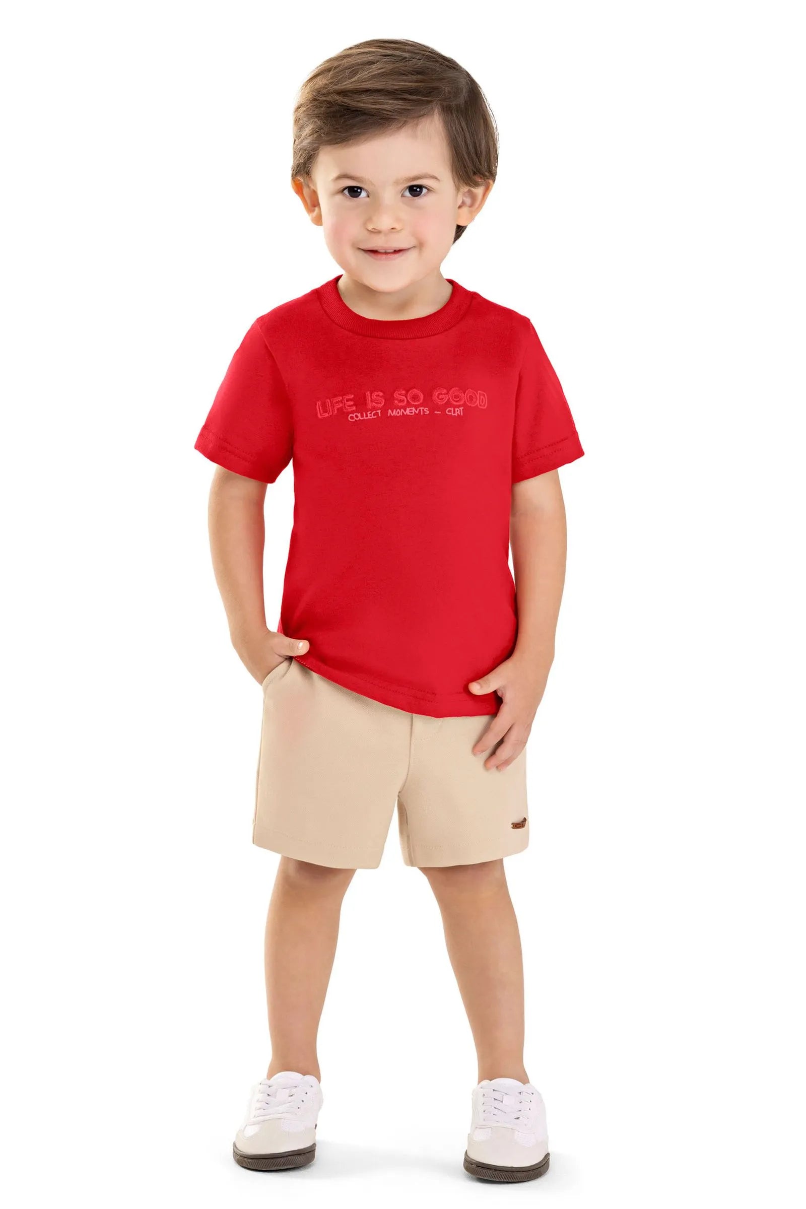 O Conjunto Colorittá é composto por camiseta em meia malha e bermuda em moletom ponto roma. A camiseta de mangas curtas possui bordado frontal, garantindo um destaque charmoso à peça. Já a bermuda conta com elástico no cós com retilínea listrada e botão decorativo, além de bolsos laterais. Ideal para momentos especiais que pedem um visual mais alinhado, esse conjunto é garantia de atitude e conforto.