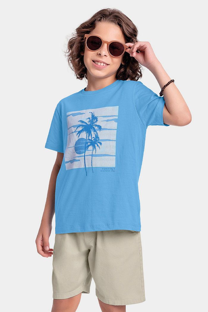 Conjunto masculino com camisa Praia Coq e bermuda em sarja Yari, uma composição perfeita para dias de sol e diversão. As cores azul e bege criam harmonia visual relaxante, enquanto o tecido de qualidade garante durabilidade para as aventuras dos meninos. Ideal para passeios à praia, parque ou qualquer ocasião que peça conforto e estilo descontraído.