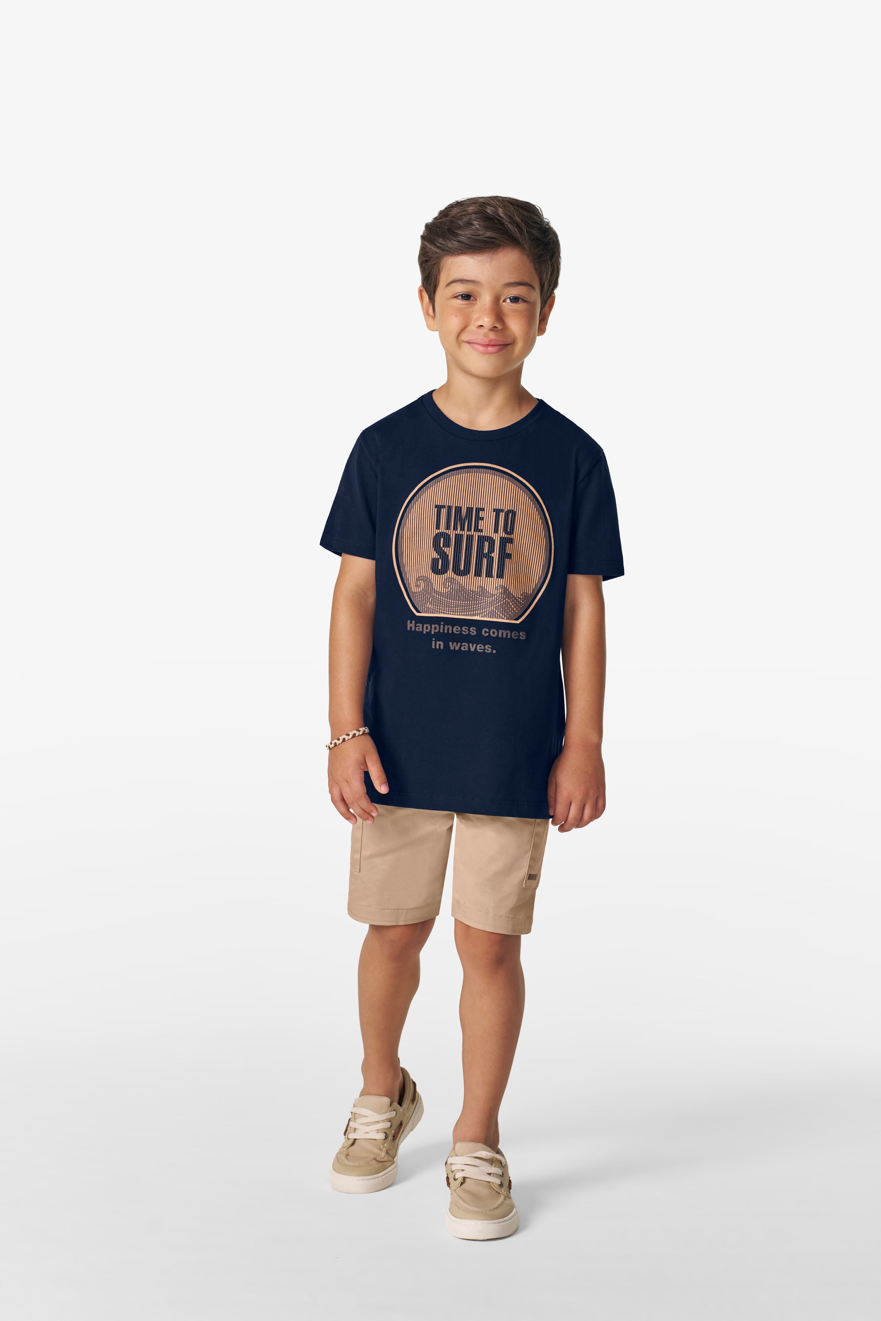 Conjunto masculino infantil perfeito para o verão. Composto por camiseta estampada com tema surf e bermuda em sarja, oferecendo conforto e estilo para as crianças. A combinação de cores marinho e sisal traz um visual fresco e moderno. Ideal para passeios, praia e atividades do dia a dia. Tecido de qualidade que garante durabilidade e facilidade de limpeza. Peça versátil que combina com diversos acessórios e calçados infantis.