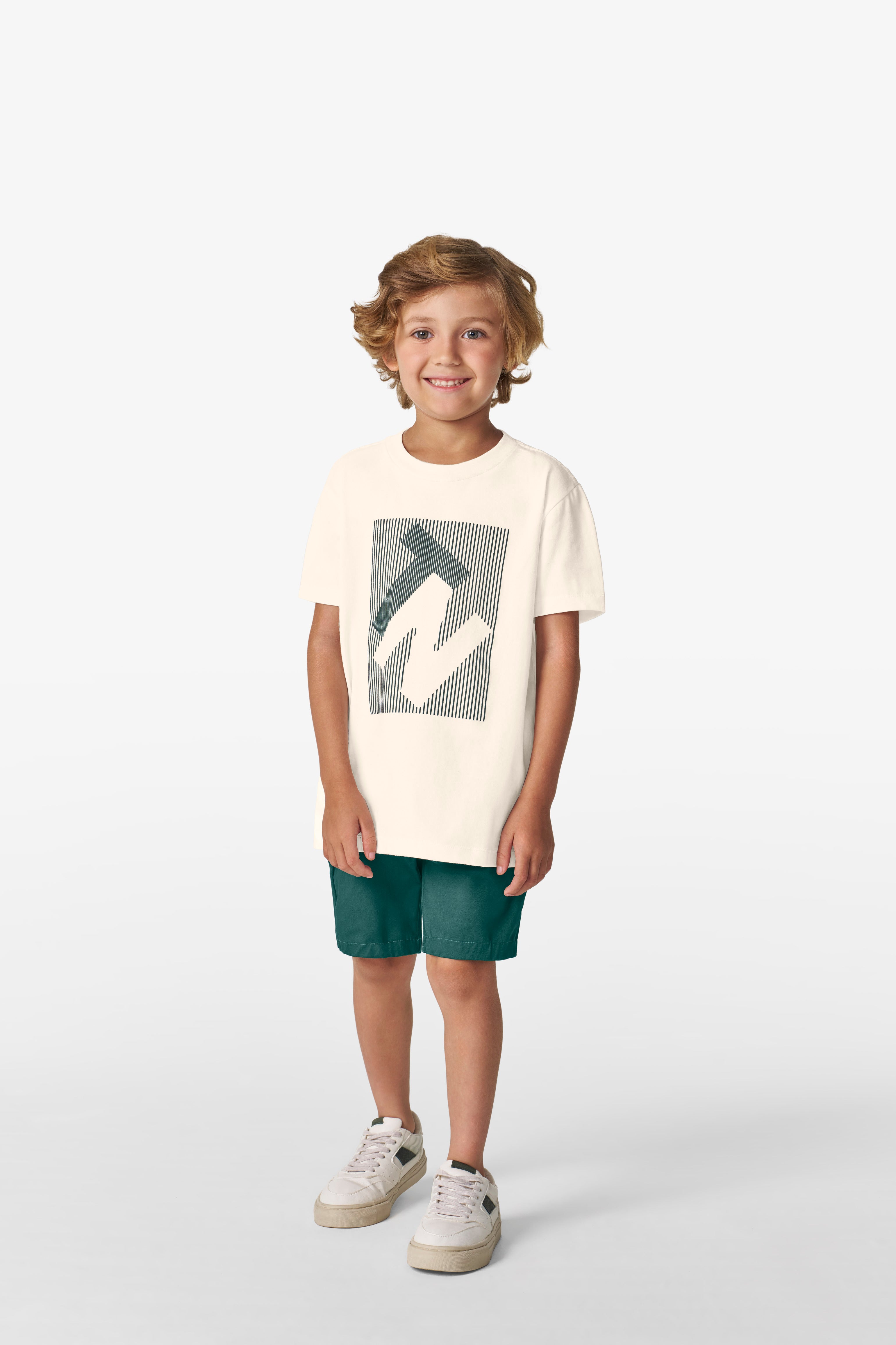 Conjunto infantil masculino em sarja de qualidade, composto por camisa de manga curta com textura em relevo quadriculado e bermuda coordenada. Cores neutras off white e eucalipto que combinam facilmente com outras peças do guarda-roupa. Tecido durável e confortável, ideal para o dia a dia das crianças. Perfeito para criar looks versáteis e modernos.