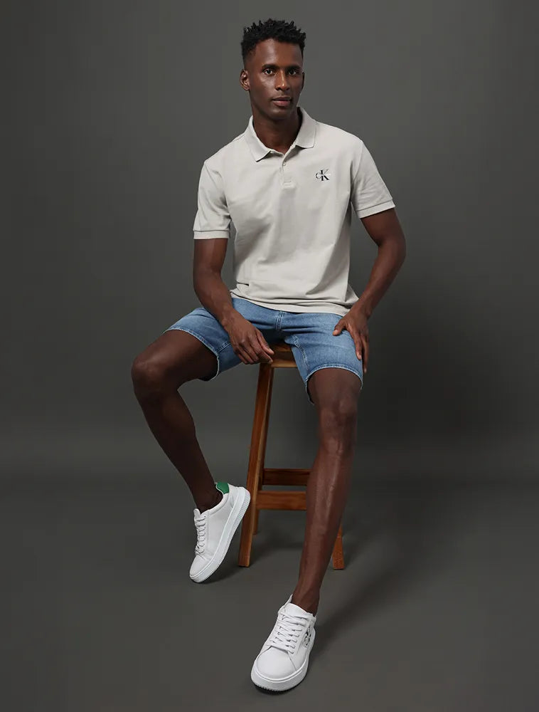 Esta polo masculina CKJ de manga curta, em tom caqui claro, destaca-se pelo logo Re Issue sutil no peito, conferindo um toque de elegância discreta. Fabricada com materiais selecionados, oferece conforto aliado a um design contemporâneo e sofisticado, perfeito para composições que transitam entre o casual e o refinado.
