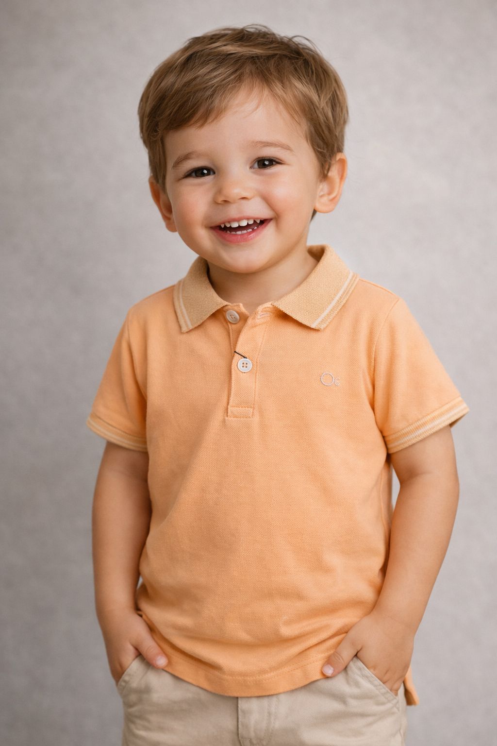 Polo infantil manga curta casual slim Ogochi em laranja claro. Peça alegre e confortável que traz movimento e personalidade ao look das crianças. O corte slim moderno oferece silhueta elegante, enquanto a tonalidade laranja claro transmite energia e diversão. Confeccionada com materiais de qualidade, proporciona conforto duradouro para as brincadeiras do dia a dia. Versátil e prática, funciona perfeitamente para escola, passeios e momentos de lazer, consolidando-se como essencial colorido no guarda-roupa infantil que valoriza conforto e estilo.