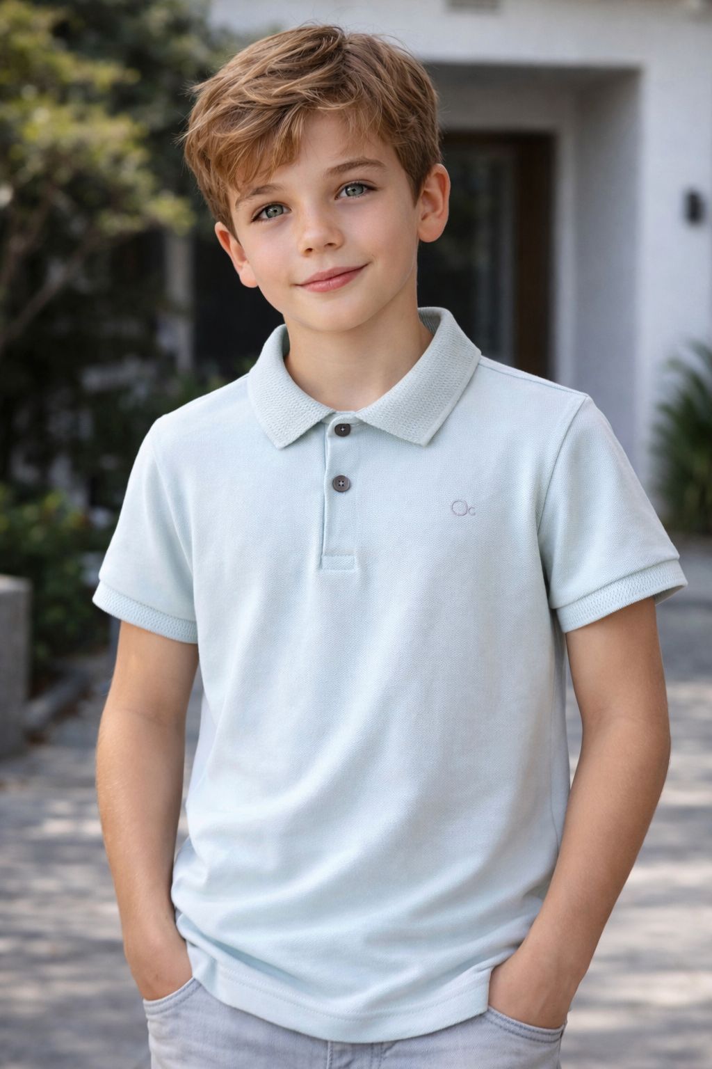 Polo infantil Ogochi em verde água refrescante com corte slim que traz modernidade e elegância ao guarda-roupa das crianças. Manga curta e design essencial que prioriza liberdade de movimento sem sacrificar o visual impactante. Confeccionado em tecido resistente que suporta brincadeiras intensas e lavagens frequentes, preservando a cor luminosa e o acabamento perfeito. Peça versátil que funciona como base neutra ou destaca-se como protagonista, permitindo composições ousadas e cheias de personalidade para pequenos que sabem o que querem.