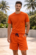 Short masculino em tactel liso que não teme chamar atenção. Laranja queimado intenso contrasta com marinho profundo, criando uma paleta que grita personalidade e confiança. Tecido em tactel de primeira qualidade proporciona respirabilidade superior e secagem instantânea, mantendo você confortável e impecável. Para quem quer se destacar sem abrir mão do conforto, este é o short que faz a diferença.