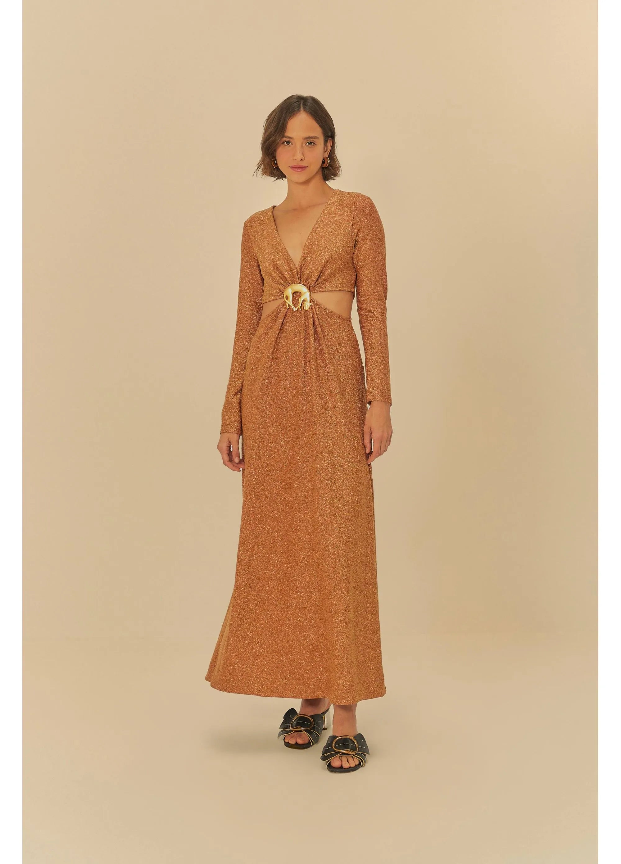 vestido cropped fivela lurex. decote em v profundo e mangas longas ajustadas destacam a originalidade da peça. a fivela centralizada e o lurex enriquecem o visual com um toque contemporâneo. perfeito para encontros noturnos ou ocasiões especiais, este vestido é um tem-que-ter no guarda-roupa. FARM RIO original - inverno 25.