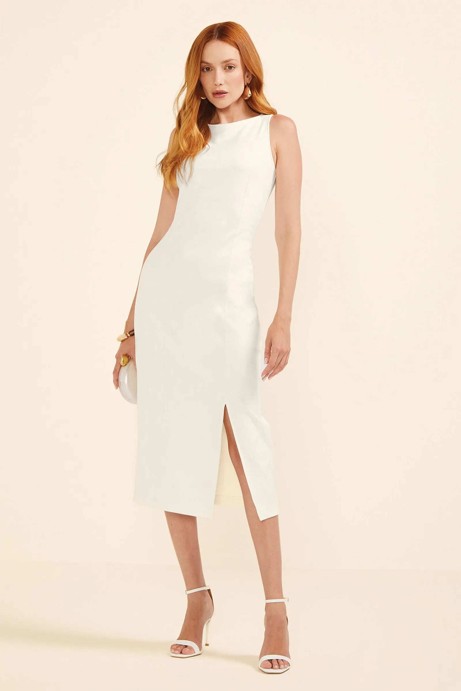 Sinônimo de sofisticação e conforto, o Vestido Marialícia traz um visual elegante para ir do trabalho ao happy hour. Feito em moletom ponto roma, ele possui comprimento midi e modelagem reta sem mangas. Os detalhes em recorte definem e valorizam a silhueta, enquanto a fenda frontal garante um toque charmoso à peça. Invista nesse must-have atemporal e combine com acessórios e sandálias para garantir sofisticação em todas as ocasiões.