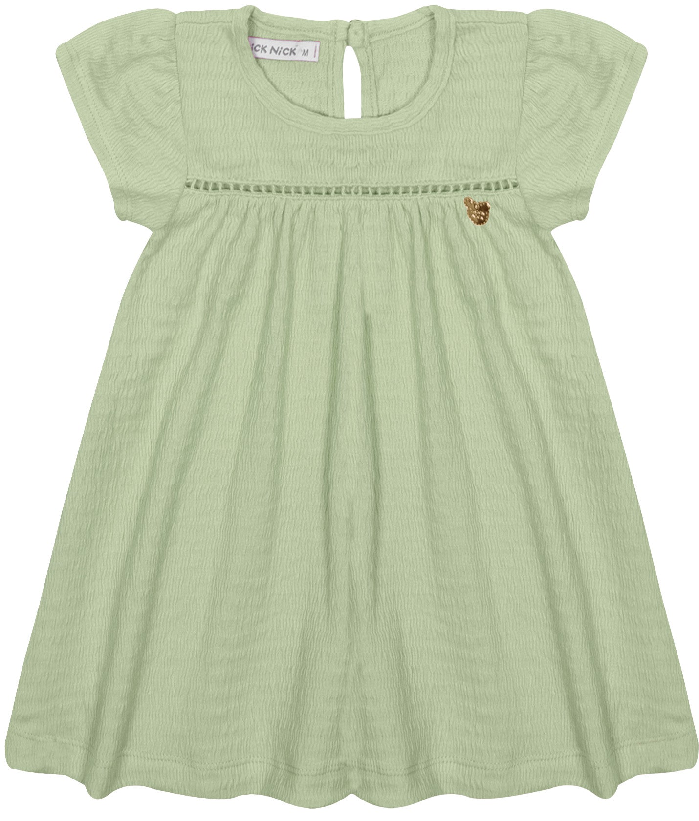 Vestido infantil de manga curta em tecido anarruga com detalhe em crochê no busto, inspirado na delicadeza da erva. Leve e confortável, é perfeito para acompanhar as aventuras das crianças com charme e frescor nos dias mais quentes.