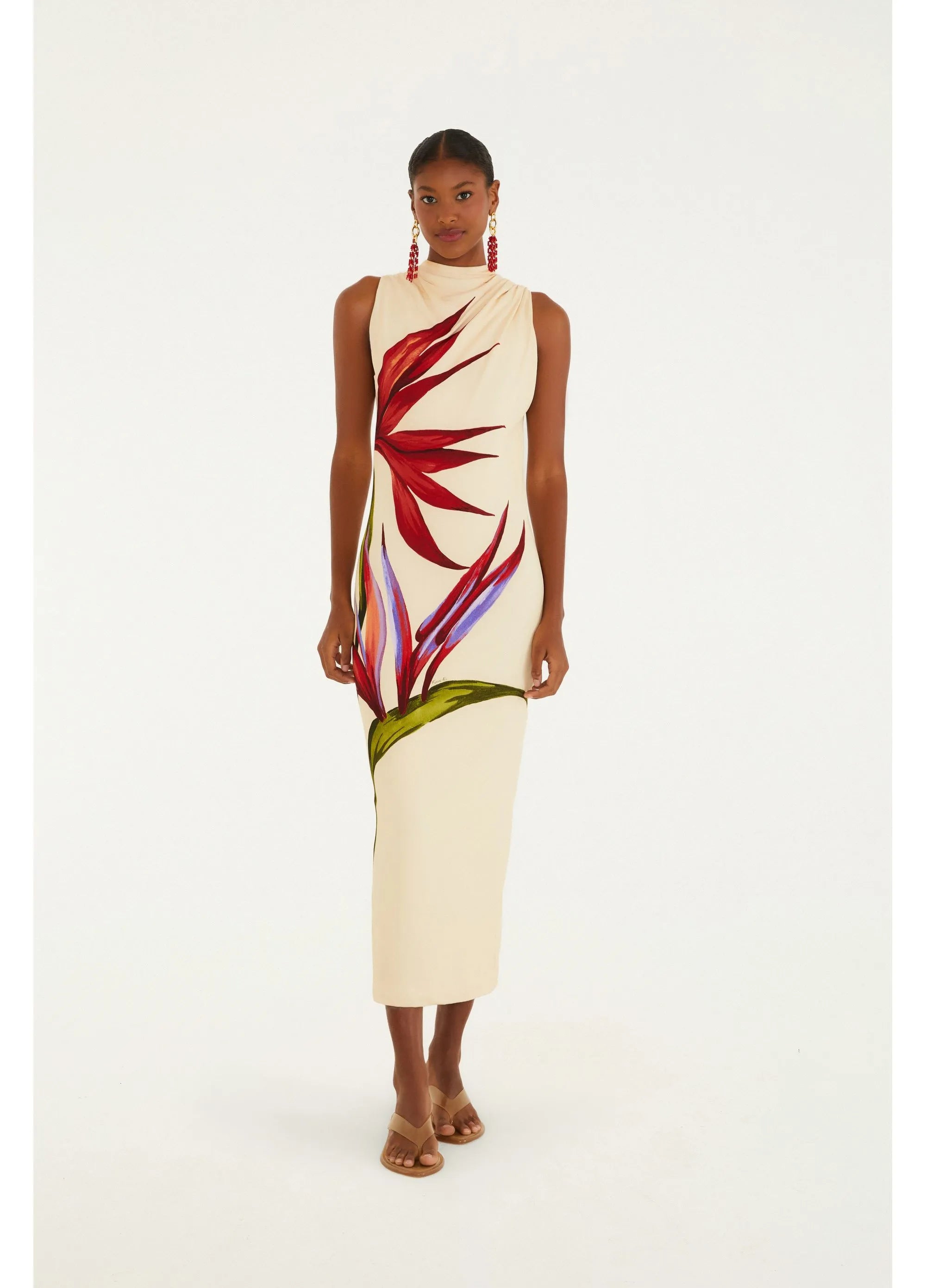 VESTIDO MIDI MAXI ESTRELICIA FARM BEGE