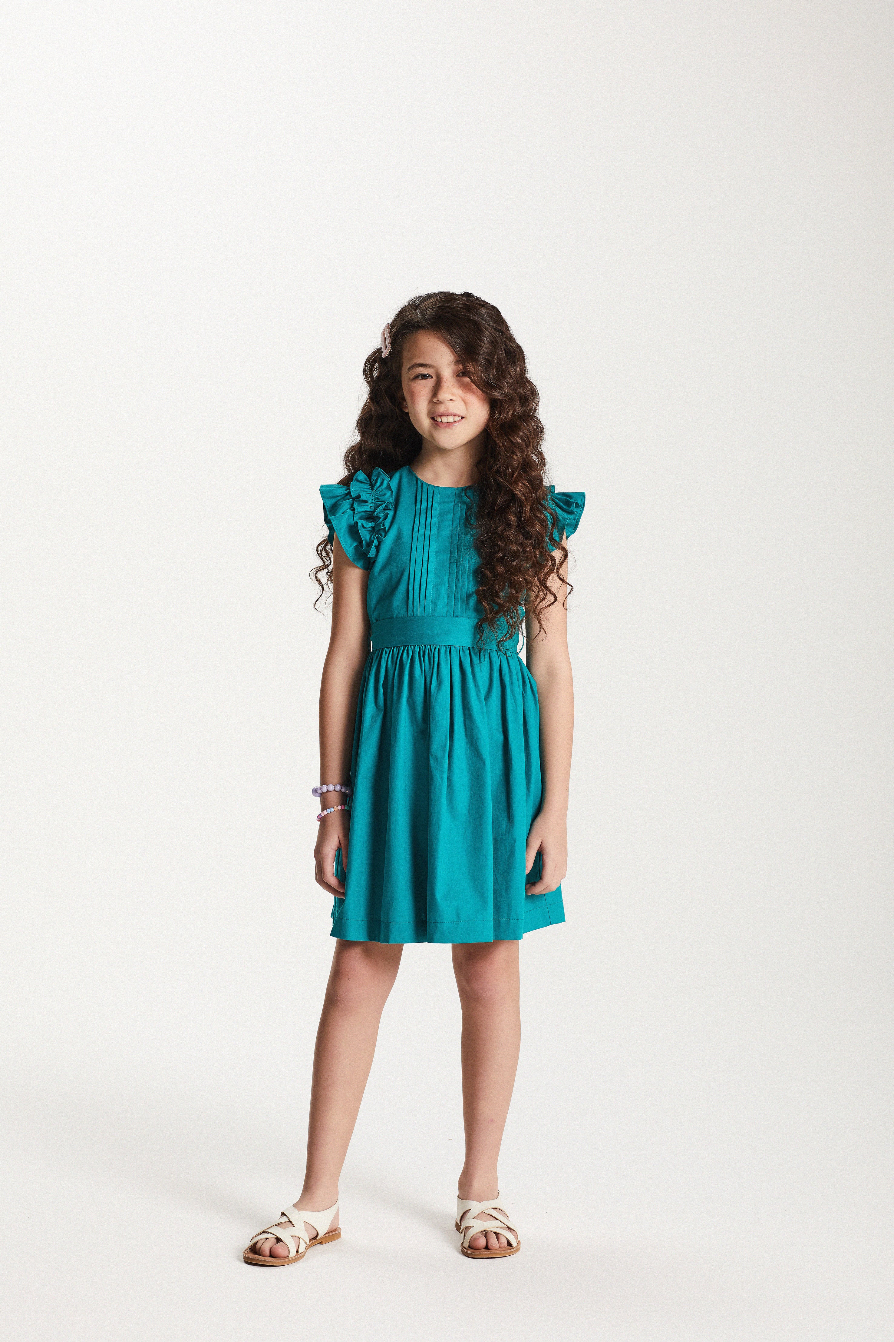 Vestido infantil rodado em tricoline verde turquesa, perfeito para o dia a dia das meninas. O tecido de tricoline oferece conforto e durabilidade, enquanto o corte rodado proporciona liberdade de movimento para brincadeiras. Ideal para criar looks frescos e descontraídos em qualquer estação. Uma peça versátil que combina com diversos acessórios e complementa o guarda-roupa infantil com estilo.